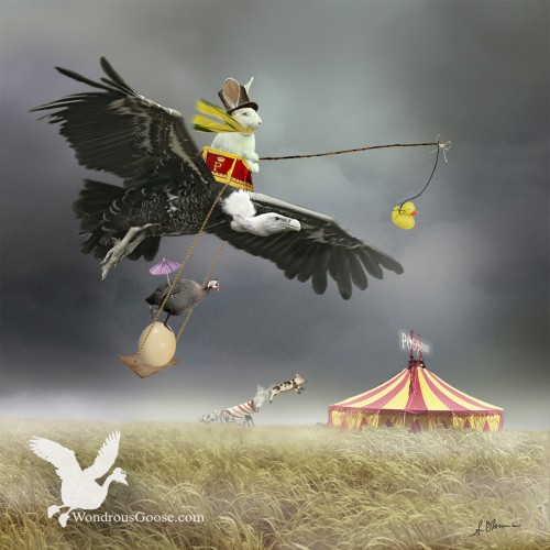 In de eerste collage die Anneke maakte kreeg toevallig een gans van Akka's Ganzenparadijs de hoofdrol. Anneke was eens op bezoek in het opvangcentrum en ‘gewapend’ met haar gereedschap ging ze met een mooie oogst aan beeldmateriaal huiswaarts.